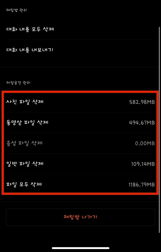 카카오톡 용량 줄이기 1 : 대화방에서 카카오톡 문서 및 데이터 정리