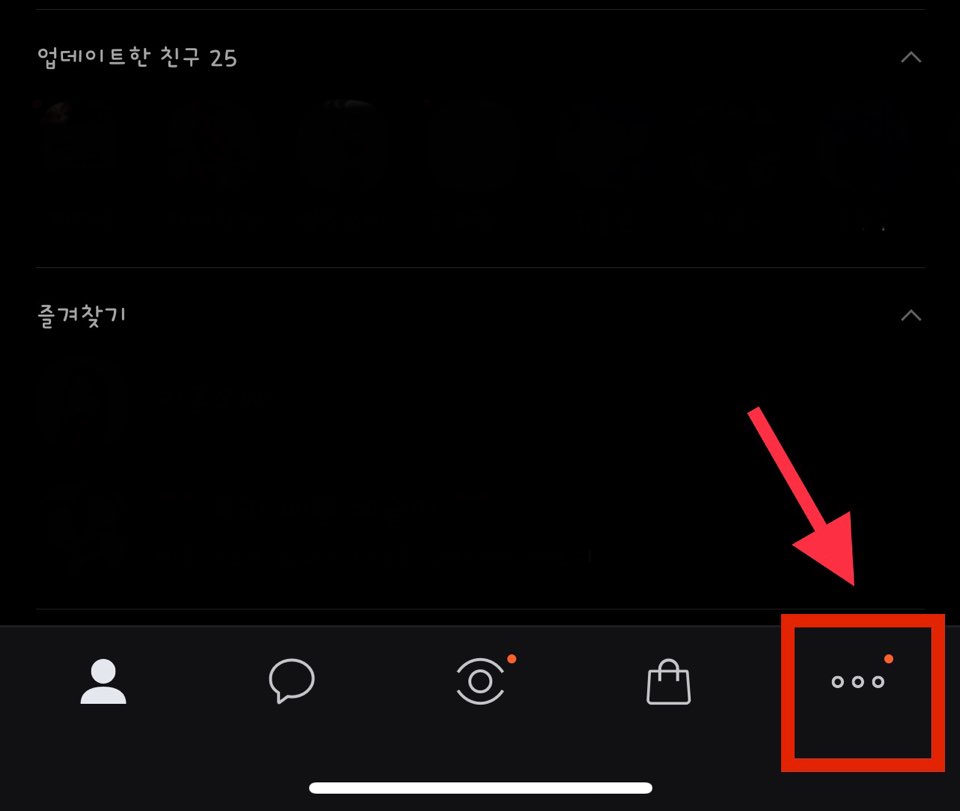 카톡 하단에 있는 점 세 개를 눌러 더 보기 항목으로 들어갑니다.