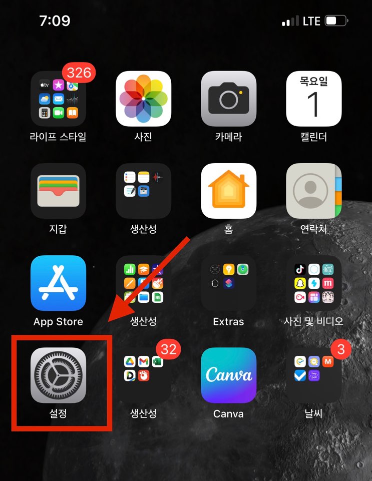 이제 아이폰에 내장되어 있는 <설정>앱으로 들어갑니다.