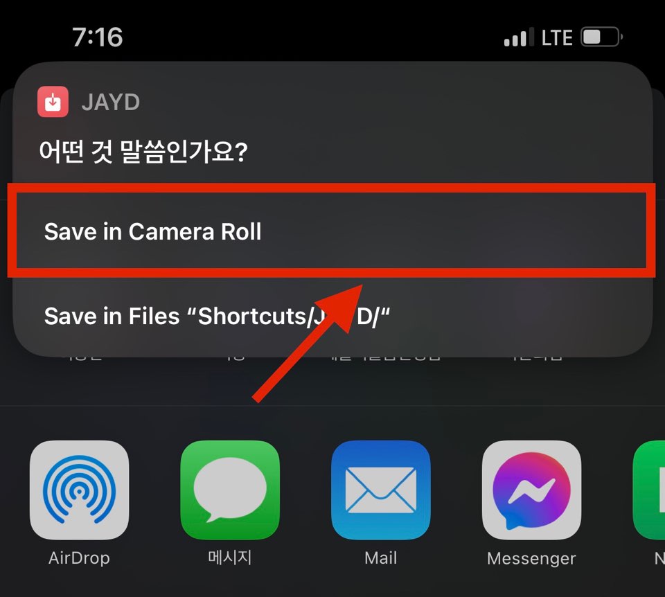 저는 영상을 다운받아보겠습니다. <Save in Camera Roll>을 눌러 아이폰 자체에 있는 앨범에 다운을 받을 수 있어요.
