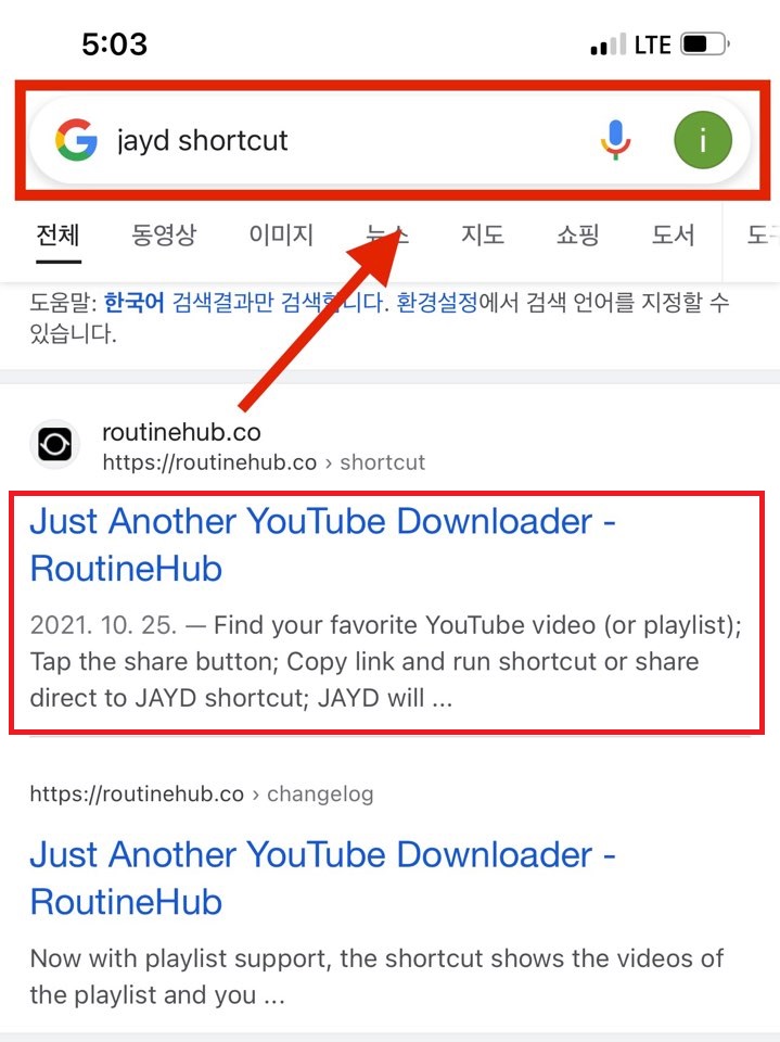 구글에 들어가서 <jard shortcut>을 검색합니다. 그리고 <routinehub> 에 접속해주세요.