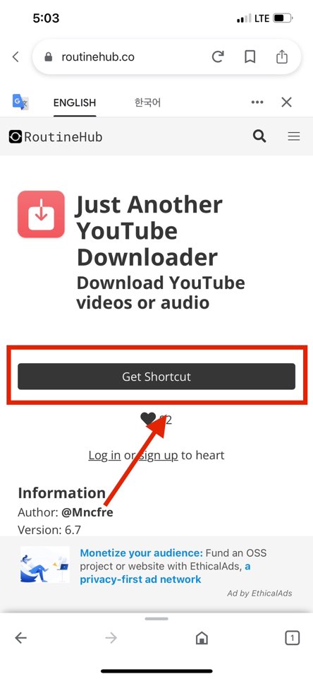 가운데 부분에 있는 <Get Shortcut> 버튼을 눌러 다운로더 스크립트를 다운로드해주세요!!