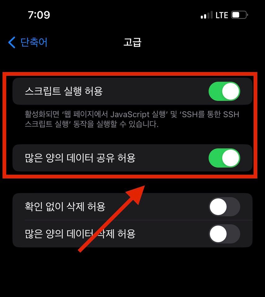 고급 설정에 있는 <스크립트 실행 허용>과 <많은 양의 데이터 공유 허용> 버튼을 눌러 두 가지 모두 활성화해주세요. 이제 다운로드를 받을 준비는 모두 끝났습니다.